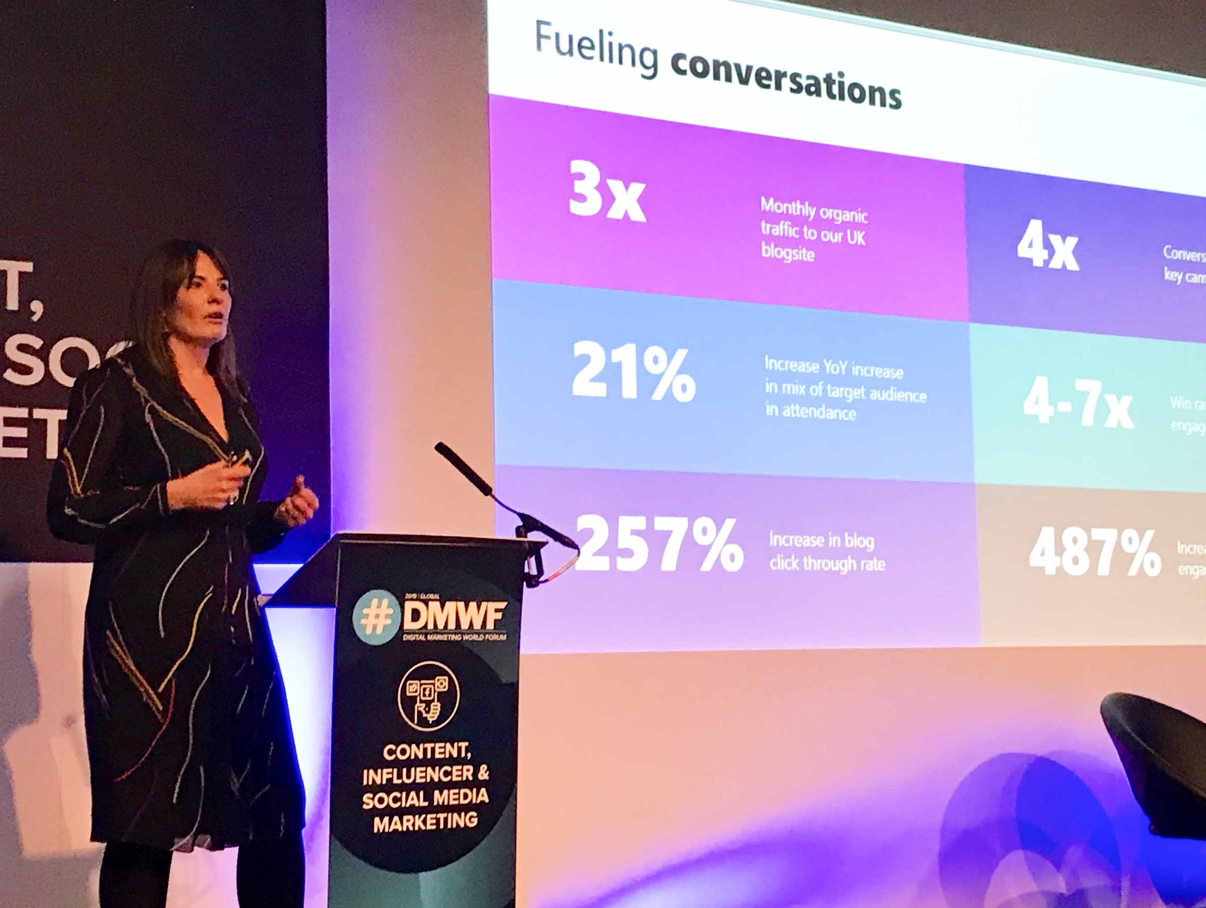 This was the headline of a presentation by Microsoft’s UK Digital Lead, Catherine Wignall, speaking at Digital Marketing World Forum in London. I was fortunate enough to attend and hear her explain Microsoft UK’s approach to an audience of attentive marketers. The presentation covered both their internal storytelling engine and the role of Metia’s Content Resonance System (CRS). I captured the key points shared by Catherine for marketers unable to attend.